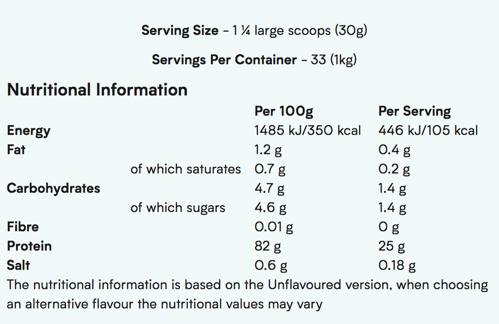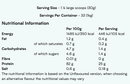 營養成分以原味為標準,其他口味會有輕微差異。